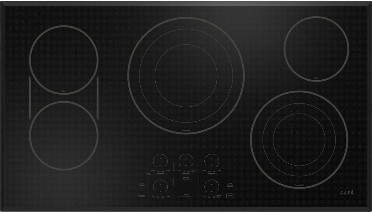 This smart cooktop features Built-In WiFi so you can monitor your burners and view power levels, precision temperature, or on/off.