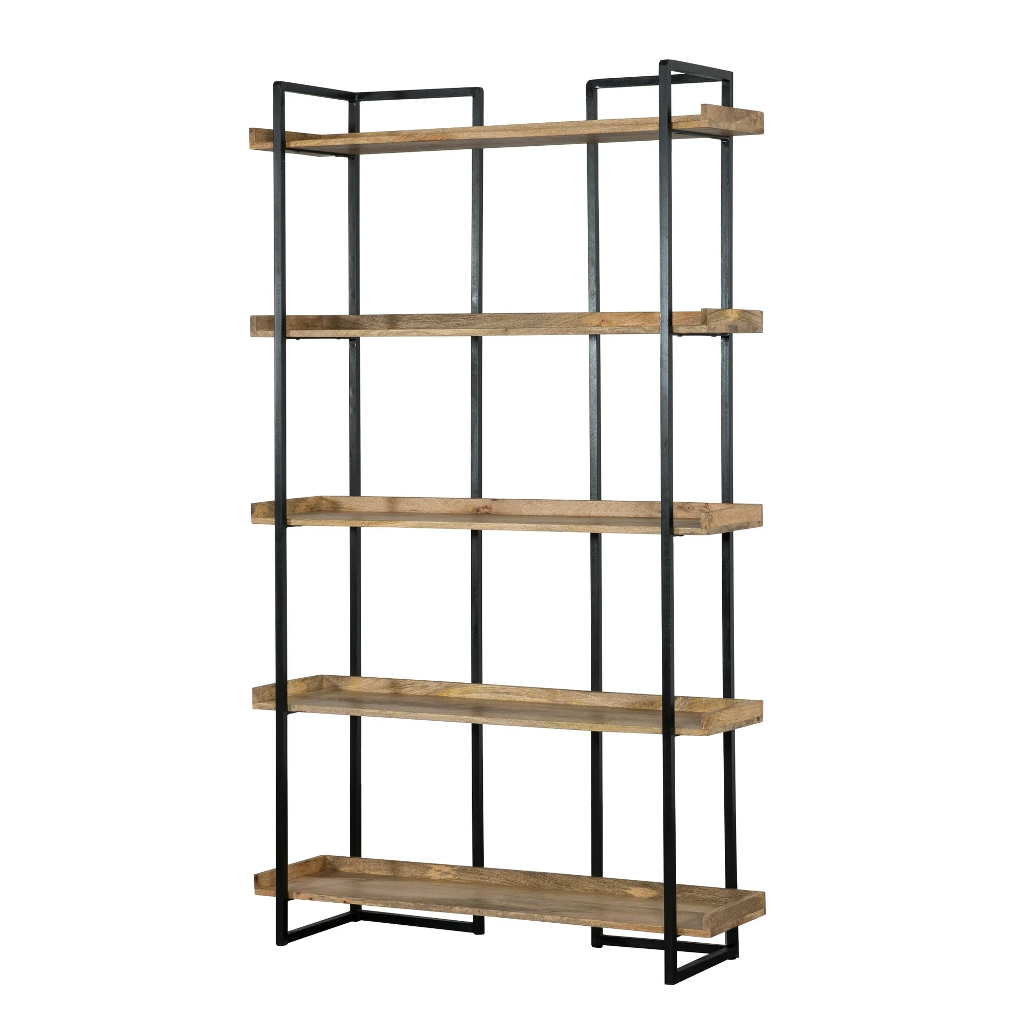 Conveniently place your books, collectibles, and décor on this 5-tier Industrial Bookshelf. The shelves are made of reclaimed mango wood with a surrounding black iron frame to ensure durability and stability. Crafted to suit a variety of settings, such as offices, living rooms, and bedrooms, this piece makes for the ideal accent piece. Features : Materials: Iron and reclaimed mango wood Finish: Brown Mango Wood Shelves Rustic Contemporary Design Sturdy Black Iron Frame Suits Office, Bedroom, or Living Room Settings 1-Year Warranty Specifications : Product Dimensions : 75"H x 44"W x 13"D Product Weight: 111 lbsRead More