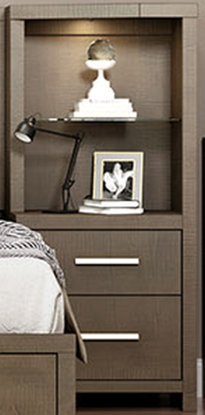 Pier Nightstand: angled pier, 2 lower drawers, a glass shelf and integrated lighting