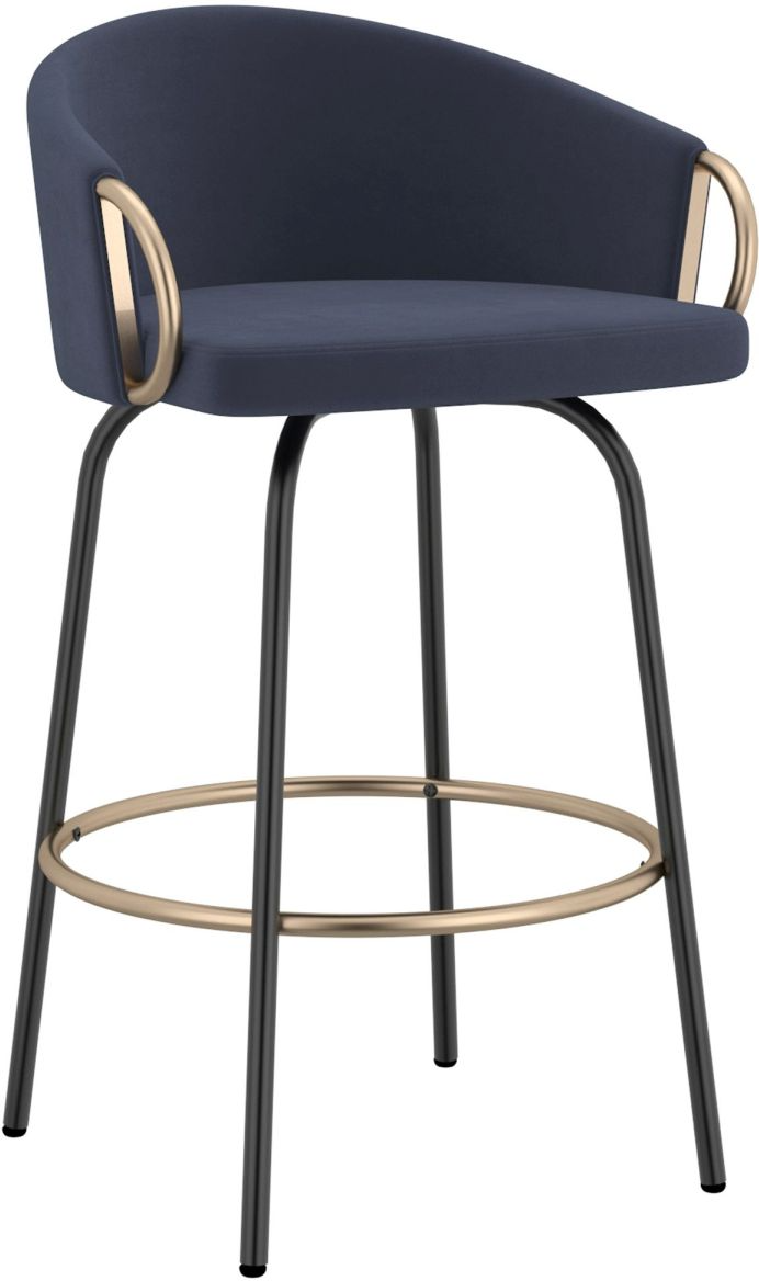 Black metal legs with aged gold footrest and aged gold accent on arms