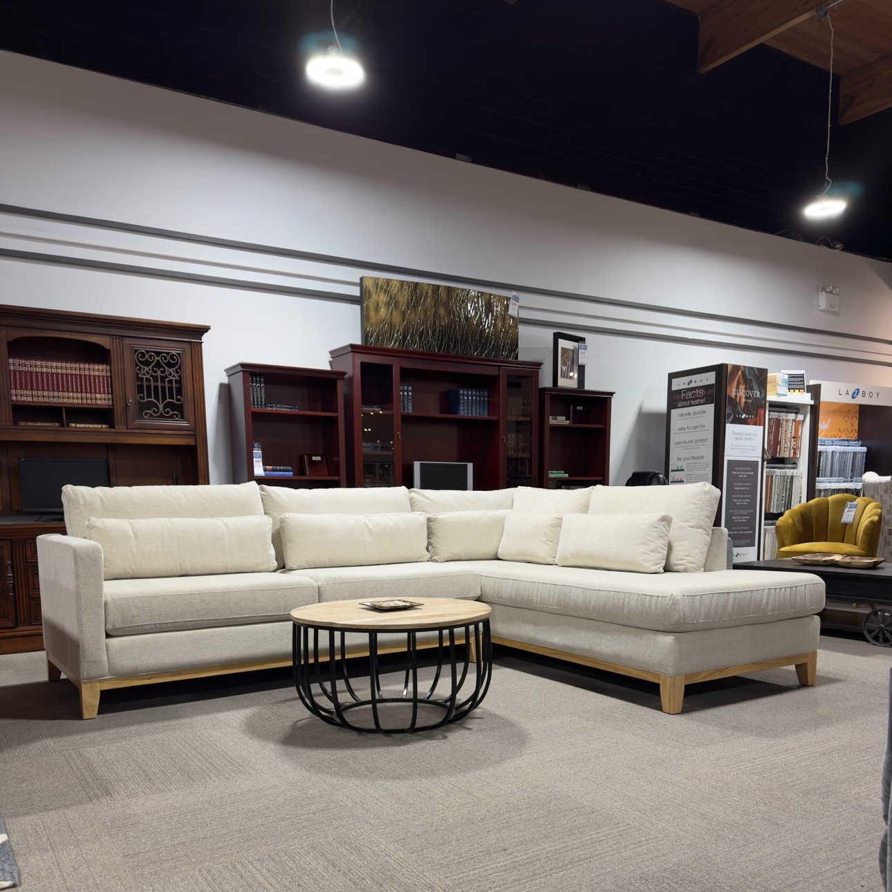 The Stylus Banyan Sectional features padded loose seats, loose back, no sag suspension and wooden legs in light finish.Read More