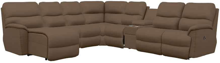 Turn casual evenings into cozy family nights with our Trouper sectional. Sink into one of the sculpted bucket seats and let the split back cushions provide soft support for your head, neck and lumbar region. Adjust the back and chaise legrest for personalized reclining comfort, or lean back without raising your feet.Read More