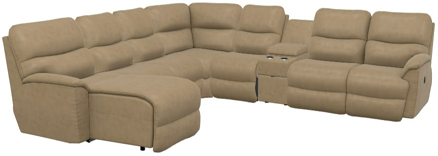 Turn casual evenings into cozy family nights with our Trouper sectional. Sink into one of the sculpted bucket seats and let the split back cushions provide soft support for your head, neck and lumbar region. Adjust the back and chaise legrest for personalized reclining comfort, or lean back without raising your feet.Read More