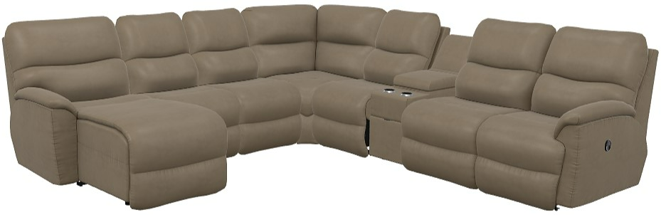 Turn casual evenings into cozy family nights with our Trouper sectional. Sink into one of the sculpted bucket seats and let the split back cushions provide soft support for your head, neck and lumbar region. Adjust the back and chaise legrest for personalized reclining comfort, or lean back without raising your feet.Read More