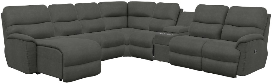 Turn casual evenings into cozy family nights with our Trouper sectional. Sink into one of the sculpted bucket seats and let the split back cushions provide soft support for your head, neck and lumbar region. Adjust the back and chaise legrest for personalized reclining comfort, or lean back without raising your feet.Read More