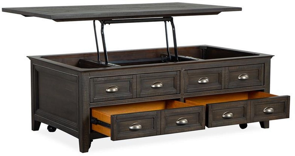Bold, straightforward and on-trend—the Westley Falls table collection makes a statement in style. A fresh Graphite finish highlighted with Aged Pewter hardware lends presence to these timeless furnishings while blending easily with your existing fabrics and finishes. This multifunctional group features spacious storage and display options that make staying organized easier than ever. Without a doubt, the addition of Westley Falls tables elevates the design quotient of any living space.