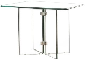 Like a window into your design world, the Alouette Collection provides a classic, yet modern platform for your living room experience. The end table features a square tabletop with glass supports that are connected by metal hardware. Coordinating cocktail table is also available.Read More