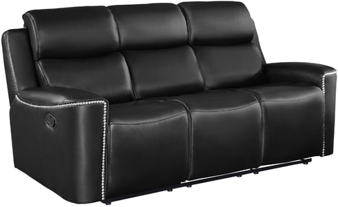 Utilizing modern lines with traditional accenting, the Altair Collection will be a unique addition to your modern home. This seating group is available in gray or black leather gel match, with decorative high-polish nailhead accent, for ultimate decorative versatility in placement within your space. Manual reclining mechanisms engage with the pull of the side-mounted tab, taking you from seated to prone in an easy movement.