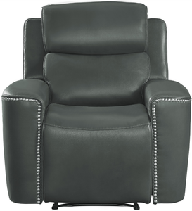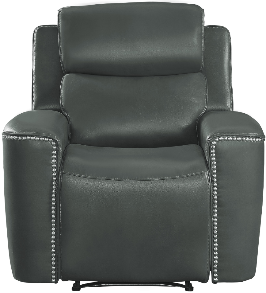 Utilizing modern lines with traditional accenting, the Altair Collection will be a unique addition to your modern home. This seating group is available in gray or black leather gel match, with decorative high-polish nailhead accent, for ultimate decorative versatility in placement within your space. Manual reclining mechanisms engage with the pull of the side-mounted tab, taking you from seated to prone in an easy movement.