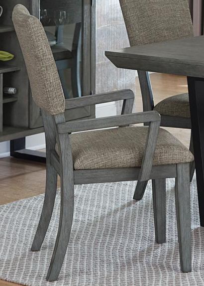 Modern styling is softened with the juxtaposition of metal and wood in the Avenhorn Collection. The wood table top and flanking chairs feature a gray finish that clearly accentuates the distinct grain pattern. Black finished metal framing supports both the table and available server. The gray fabric that covers the side and arm chairs creates additional visual contrast to the collection.Read More