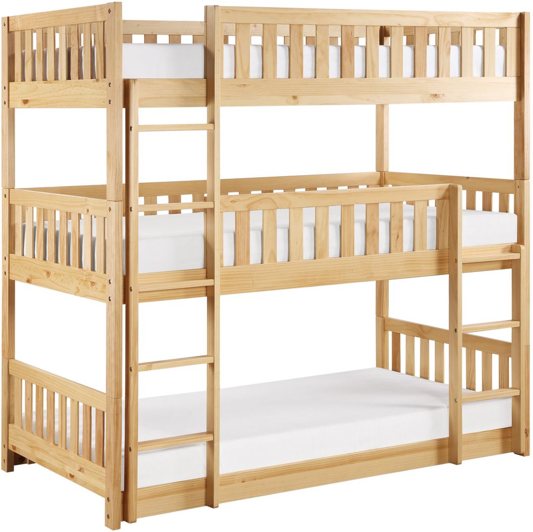 Maximizing sleep space is achieved with the stylish Bartly Collection. This transitional triple twin bunkbed is featured in a natural pine finish making it an appropriate choice for a number of youth bedroom settings.Read More
