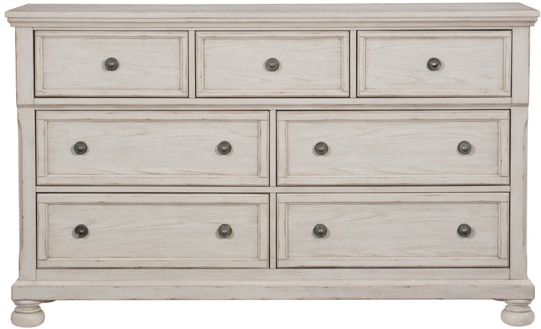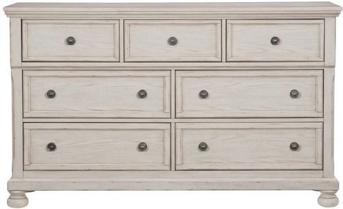 An updated classic addition for your transitional bedroom is the Bethel Collection. Traditional accents, such as, turned bun feet that support each piece, and an antique white, lightly wire-brushed finish on ash veneer and selected hardwoods, blends with framing and lines that complement your personal style. Hidden drawer storages in the nightstand and dresser are a clever way to hide your valuables. Grey finish is also available.Read More