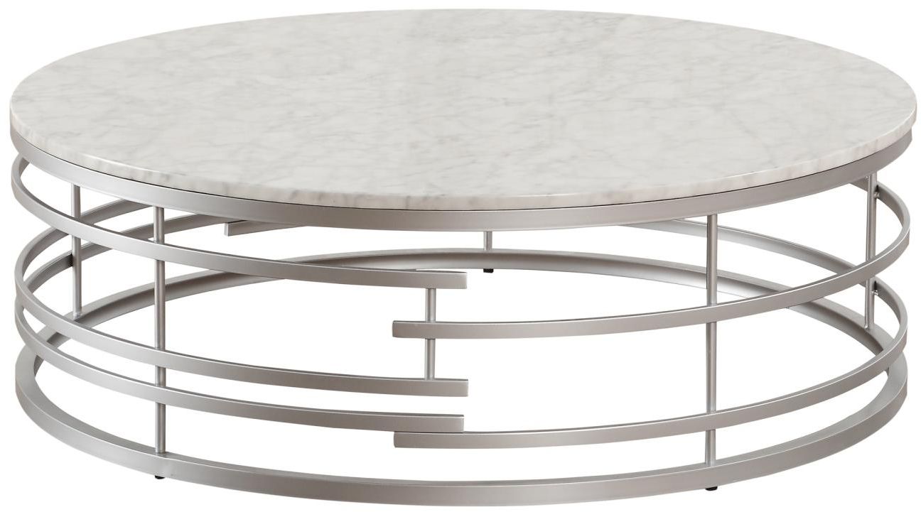 The look of elegant look of silver and marble paired with a hint of glamour and modern styling come together to create the Brassica Collection. Printed Carrera faux white marble provides stark contrast to the geometric inspired silver-finished round metal base of this sophisticated occasional collection. The collection is also offered in a gold finish.Read More