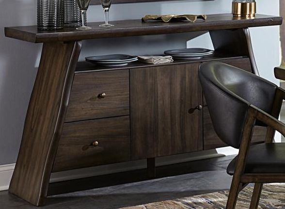 The substantial profile of the Cabezon Collection will be a unique addition to your home’s dining space. The live edge mindy wood offering creates a sturdy platform for your mealtime gatherings. The side chairs feature dark brown bi-cast vinyl seats and backs with wood framing. An available wood bench allows you to customize your seating experience. Rounding out the collection is the server. Behind door storage, drawers and open display shelf provide ample space to store your tabletop accessories.Read More