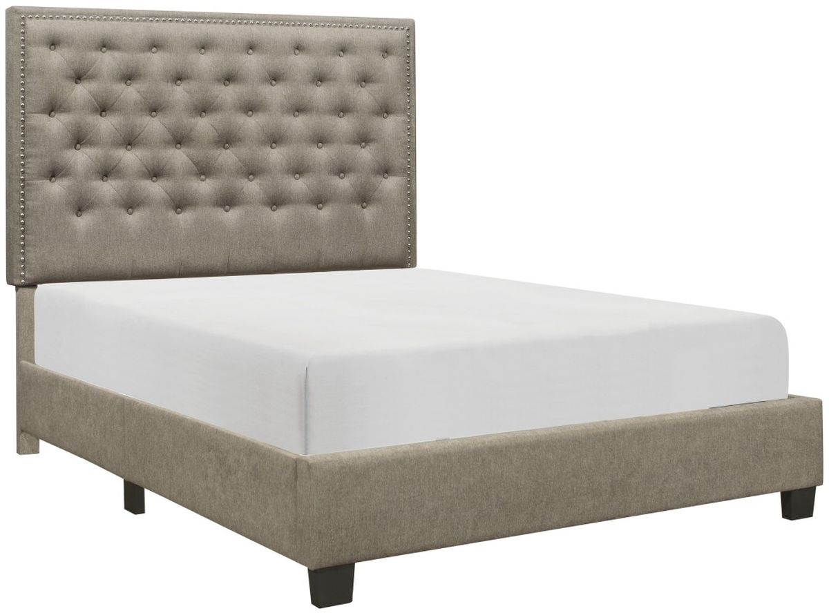 The panel headboard of the Chadwick Collection provides an elegant focal point for your bedroom. With styling that lends to placement in modern traditional environments, the California King upholstered bed’s profile is defined by nailhead trim, features button-tufting and is covered in peat linen-like fabric for neutral accent to your bedroom’s decor.