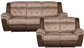 The two-tone brown microfiber fabric of the collection lends to placement in a number of decorative environments. Manual motion mechanisms operate with the pull of a side-mounted tab, that once engaged, take you from seated to reclined in an easy motion. The set features dual reclining ends.Read More