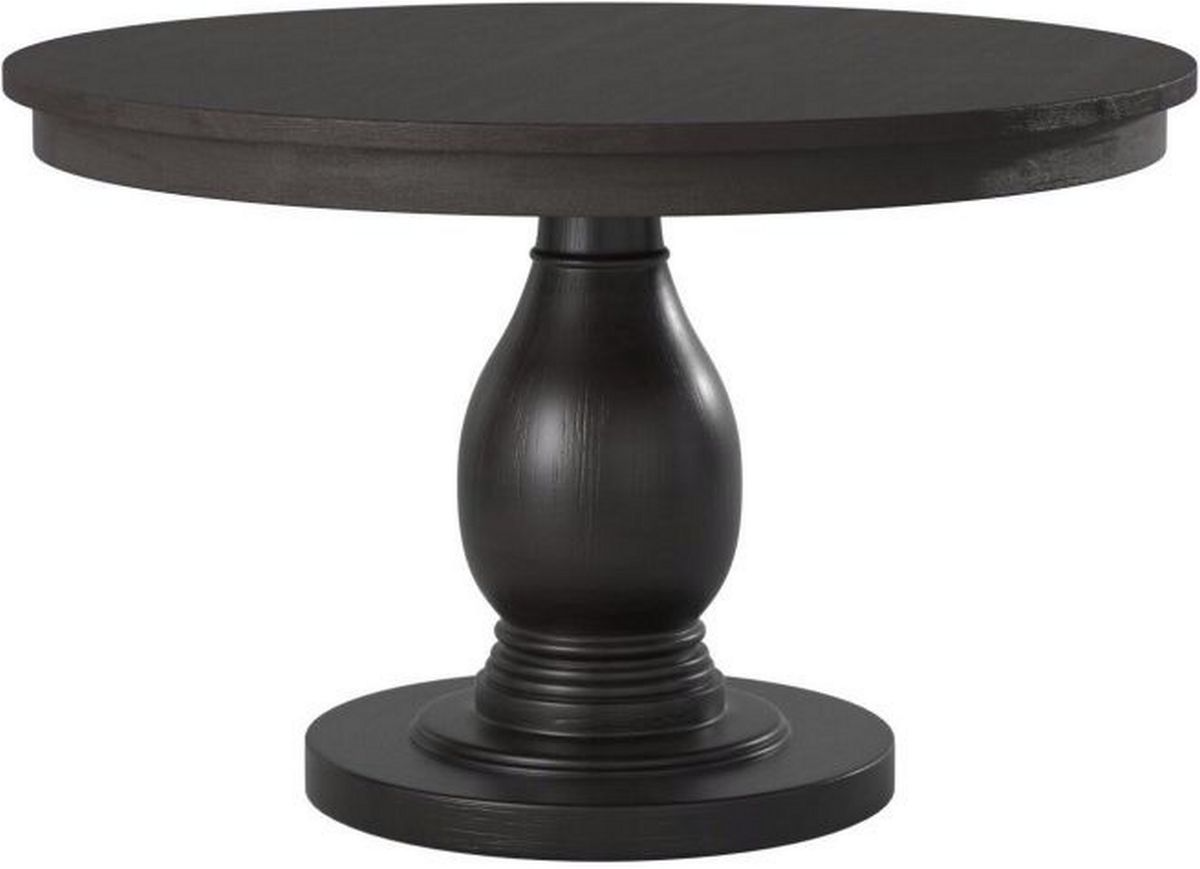 Traditional style does not need to mean old and stuffy. Take the gracefully turned pedestal base of the Dandelion Collection, and traditional style takes on a whole new meaning. The distressed dark brownish gray finish over ash veneer is a fresh look which is sure to be the highlight of your dining room.Read More