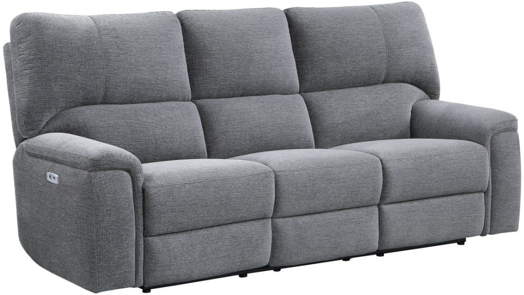 The unfettered design of the Dickinson Collection allows for perfect placement in homes with decorative themes that range from modern to transitional. Offered in charcoal chenille, the sofa features dual end manual motion reclining mechanisms. The manual motion mechanism is engaged with a pull of the side mounted tab, taking you from seated to reclined in an easy motion. The expanse of the streamlined pillow-top arms furthers the comfort level of your downtime.