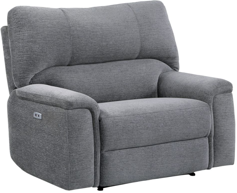 The unfettered design of the Dickinson Collection allows for perfect placement in homes with decorative themes that range from modern to transitional. Offered in charcoal chenille, the chair features a power motion reclining mechanism. The power enhanced units feature adjustable headrests and electronically assisted recline. The expanse of the streamlined pillow-top arms furthers the comfort level of your downtime.