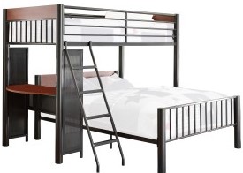 Allowing for creative placement in the room and separate from the structure of this unique metal bunk system is a full bed. Perched above the built-in student desk is the twin bed. With metal framing that lends an air of contemporary style and a light graphite finish.Read More