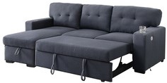Treat your living room to the versatility and casual contemporary flair of the Edison collection. As for the night, the loveseat features a pull-out sleeper that pairs perfectly with the chaise to create a bed, not to mention the chaise opens to reveal hidden storage for stowing your extra blankets and pillows. To top it all off, the cushy foam padding and coil spring seats are upholstered in an attractive dark grey linen with tufted back cushion detailing, making the Edison sectional an all-around crowd-pleaser.