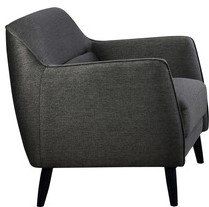 Sleek mid-century styling is the inspiration behind the Georgina chair. Upholstered in tasteful grey fabric that blends well with any décor, this chair is the epitome of casual elegance.