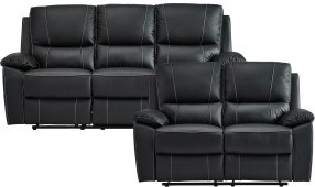 Plush seating and backs extend from seated to prone with a pull of the manual reclining mechanism on each piece in the collection. The top and front bodies is covered in black top grain leather, with leather match covering those areas beyond your initial reach.Read More