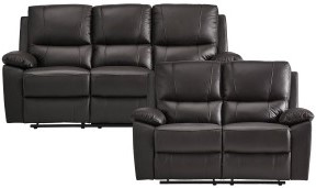 Plush seating and backs extend from seated to prone with a pull of the manual reclining mechanism on each piece in the collection. The top and front bodies is covered in brown top grain leather, with leather match covering those areas beyond your initial reach.Read More