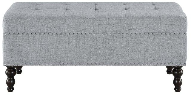 Designed for the modern traditional home, the Hamden Collection provides decorative and functional use to your space. This accent bench is features light gray fabric, turned legs and stitch-tufting that furthers the classic style. Also available in Dark Gray.