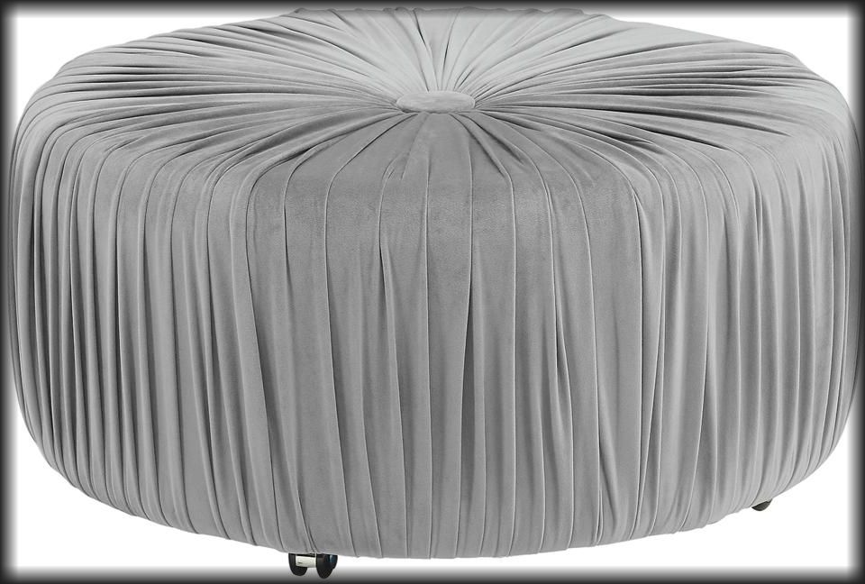Luxurious, decadent, glamorous – a lifestyle of decorative extravagance is within reach with the Jaunt Collection. Velvet fabric is tufted with dramatic flair at the center of the round ottoman, punctuated with an eye-catching over-sized button. Offered in navy, blue and gray for perfect placement within your personal decorative scheme. Casters allow for quick and easy movement around your space.Read More