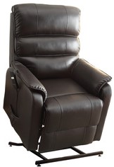 At just the touch of a button you can easily recline back, then once you are ready to get up you can be lifted up safely and comfortably. The dark brown bonded leather fabric with transitional styling makes this recliner the perfect additional to any living space.Read More