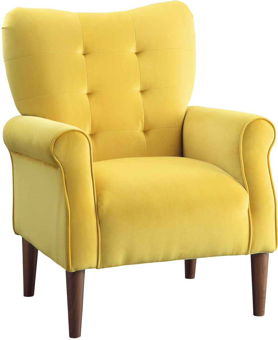 The classic style of the Kyrie Collection lends perfect accent to your home’s décor while providing the additional seating that your space needs. The yellow velvet covering lends a dramatic pop of color while the traditional contoured arms and back lend to the timeless look.Read More