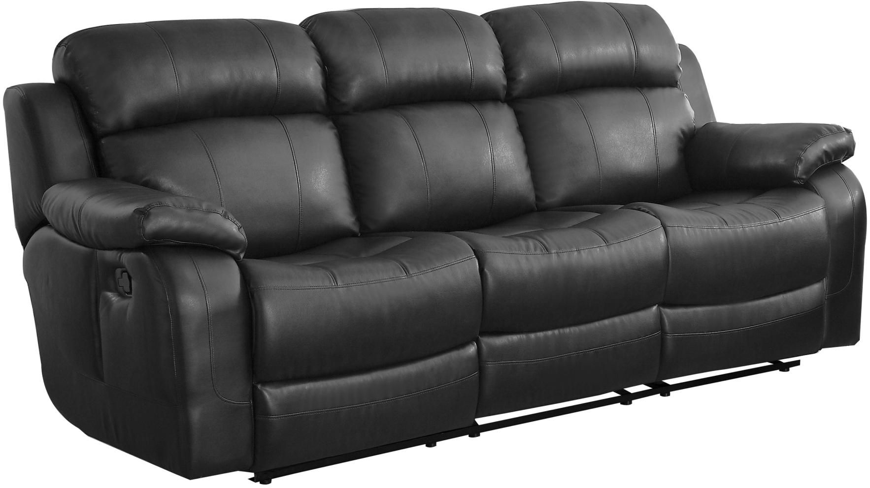 With either the extended stretch of the reclining sofa or soothing rock of the reclining chair, your comfort is taken care of in the Marille Collection. Drop down cup holders add additional function to the collection. The collection is offered in dark brown or black bonded leather match.Read More