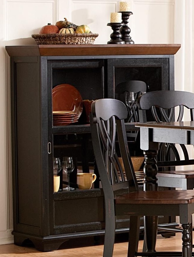 The design of Ohana Collection captures the essence of a casual country home. Its antique white and warm cherry, or antique black and warm cherry finishes give it a striking two-toned appearance. The solid wood table top and unique chair back supported by turned legs complement Ohana Collection with a touch of elegance. This group is further accented by the curio which features two sliding glass doors. It’s a warm look you’ll love having in your home.Read More