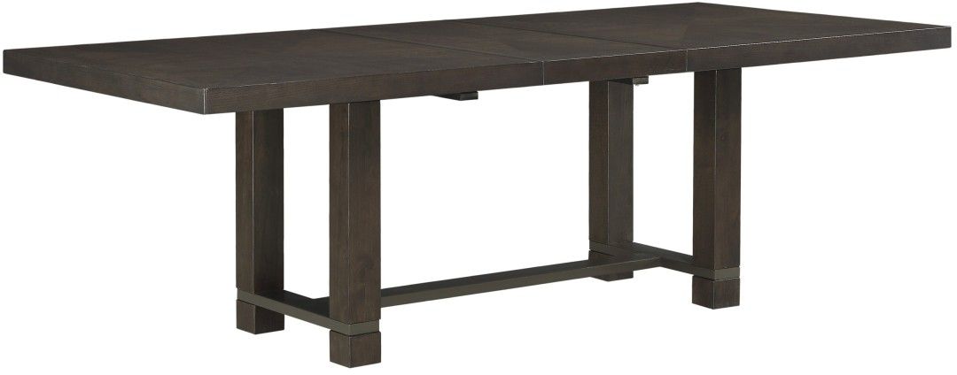 The streamlined profile of the Rathdrum will present a modern platform for your mealtime, pairing with the elegant style that defines your home. The trestle table’s top features book-matched oak veneer that is highlighted by dark oak finish, allowing for the depth of the distinct grain to create dramatic eye-appeal.Read More