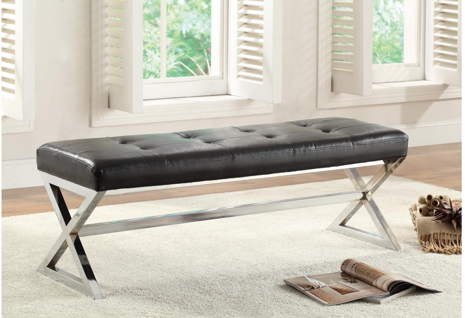 In looking for an accent piece for your home, your desire style and functionality – the Rory Collection delivers on both counts. Offered in black bonded leather and gray linen fabric this decorative bench features button tufting and a continuous X-frame design. The padded seat, along with a clean design, provides the perfect spot for a moments rest.Read More