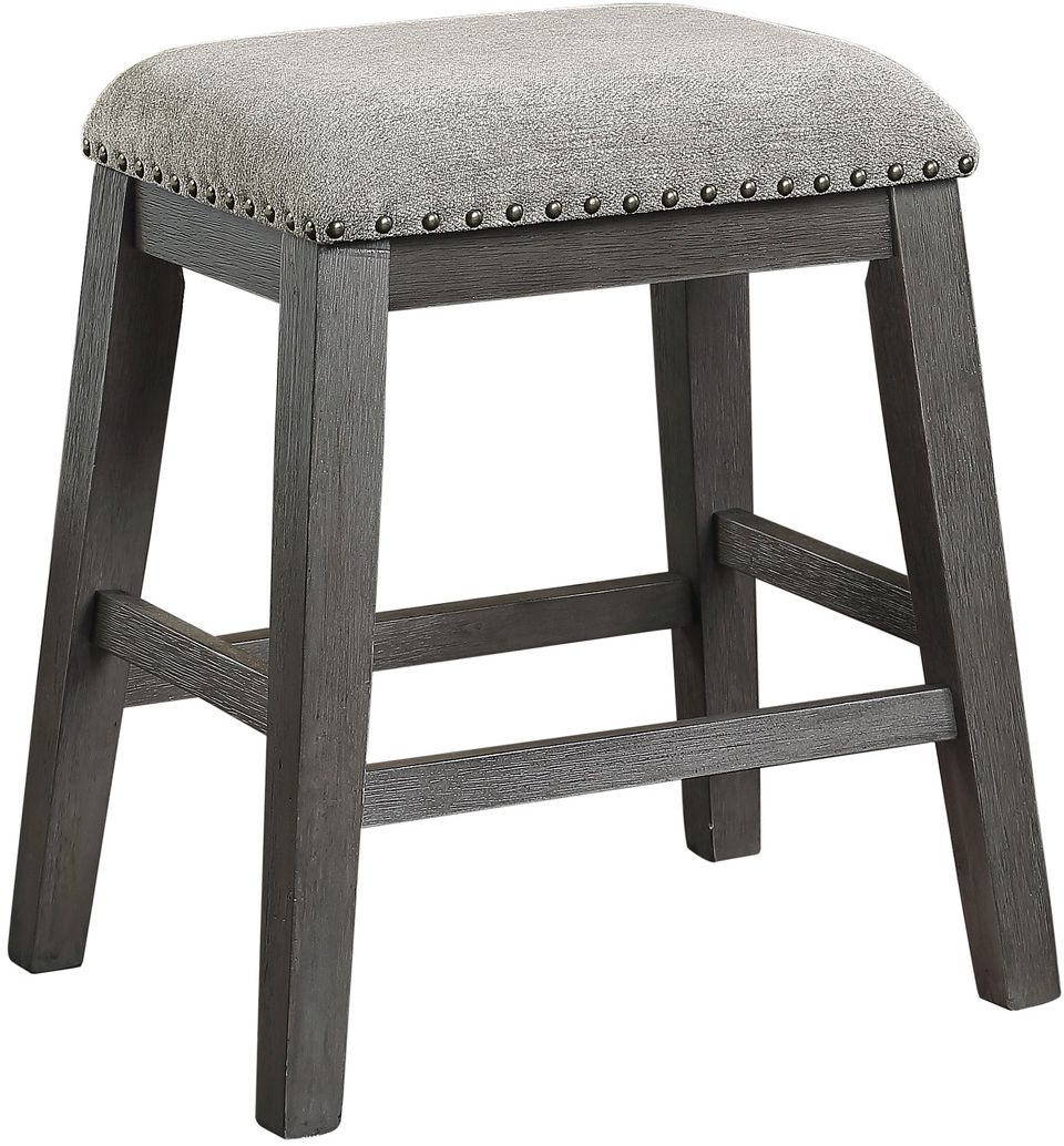 The design of the Timbre Collection will be the perfect seating addition to your casual dining space. The counter height stool’s legs feature wire-brushed acacia veneer that is highlighted by a gray finish. Topping the stool is the gray chenille fabric seat with nailhead accent.Read More