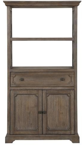 Drawers, closed cabinet and open display shelves are featured on the bookcase, while wire-brushed distressing provides texture to the acacia veneer of this elegant home office collection.Read More