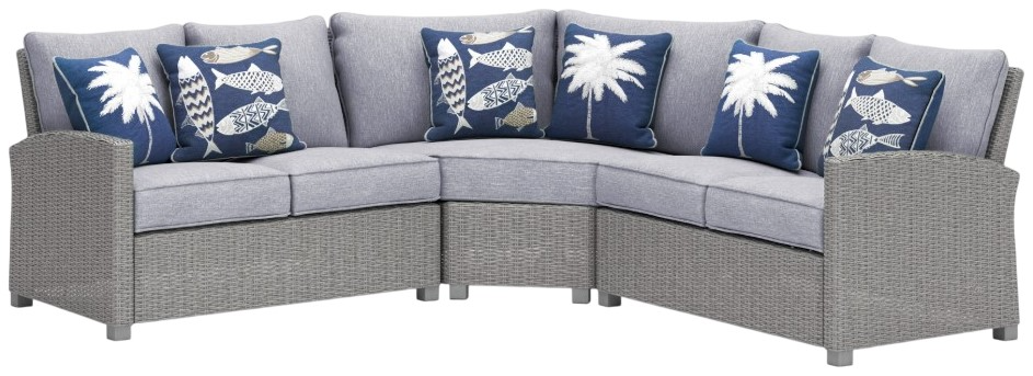 Indulge in backyard bliss. This outdoor sectional has a straightforward sense of style with its light gray resin wicker and wood-look finish. Gray high-performance Nuvella+™ fabric covers the seat and back cushions, weathering the elements and keeping your aesthetic casually cool.Read More