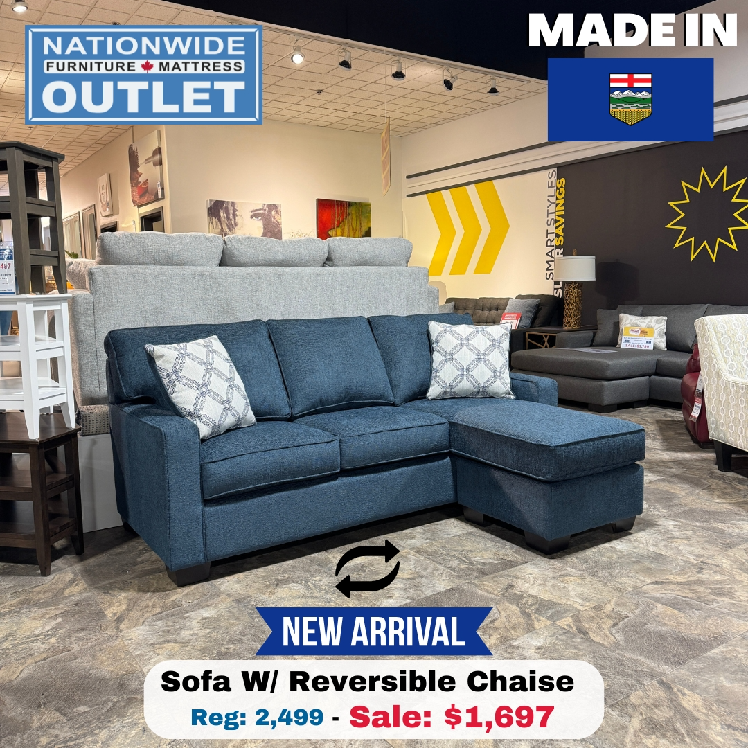 Made In Alberta! This Sofa Chaise With Reversible Ottoman Is Practical & Made With Quality Materials. Upholstered in IndigoRead More